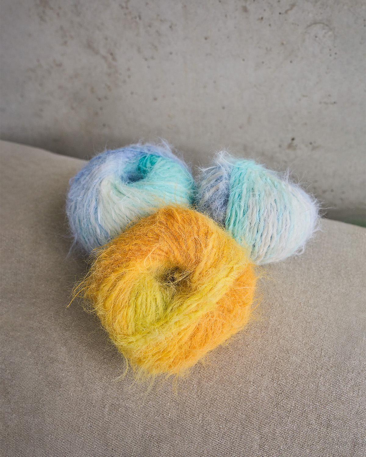 57 % Laine vierge mérinos, 20 % Mohair, 23 % Polyamide