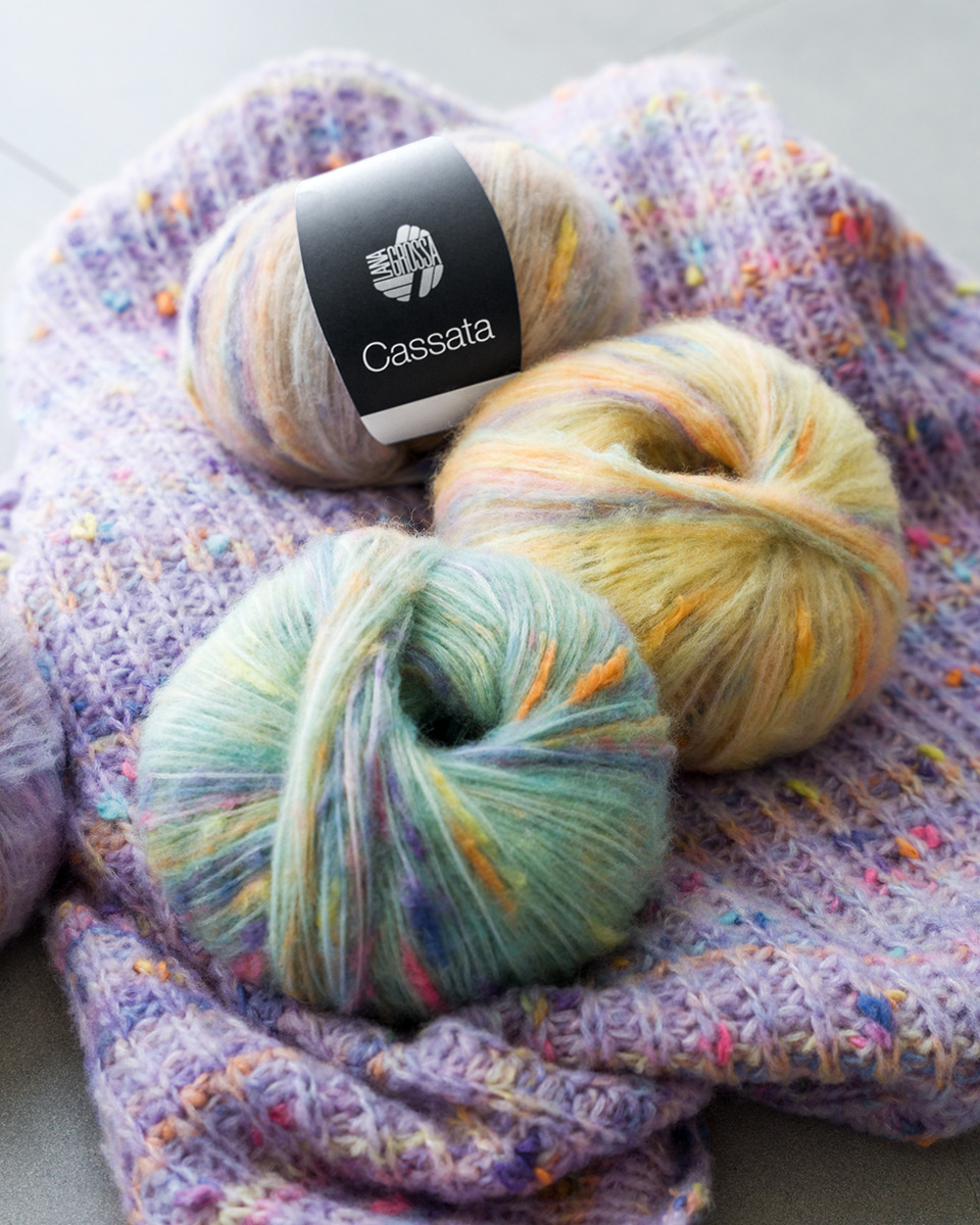 Avec Cassata, Lana Grossa propose un fil alliant parfaitement légèreté, volume et couleur. Le mélange de coton et de laine vierge offre un toucher merveilleusement doux et un motif de maille léger au caractère moderne.