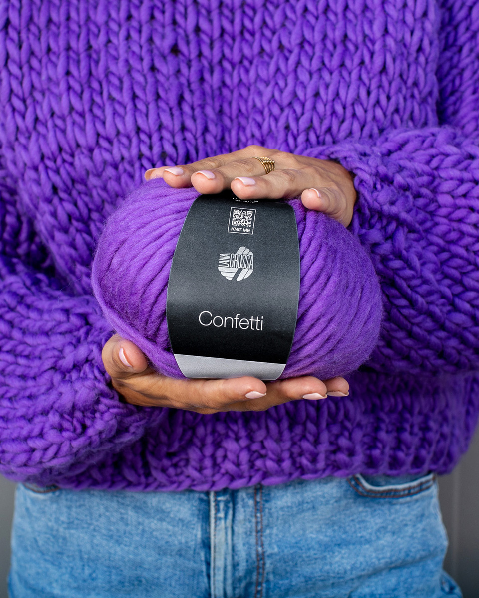 Confetti est un fil épais en floche, 100 % laine mérinos fine, qui crée des pièces tricotées ludiques et vivantes grâce à son effet unique de noppes. Sa structure douce et volumineuse donne un rendu de mailles nettes et rustiques – parfait pour des pulls, bonnets, écharpes ou accessoires audacieux. Les petites noppes colorées, comme des éclaboussures de couleur, sont dispersées dans le fil, faisant de chaque pièce une création unique et pleine de caractère.