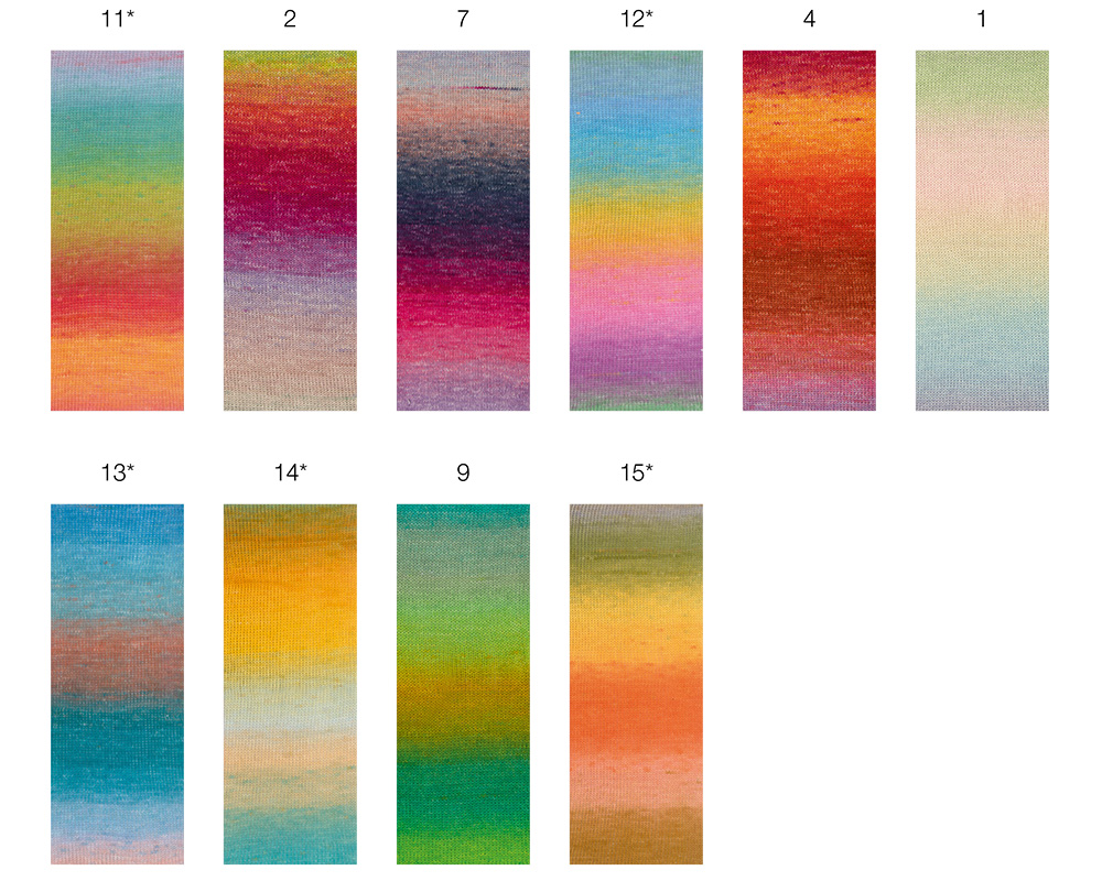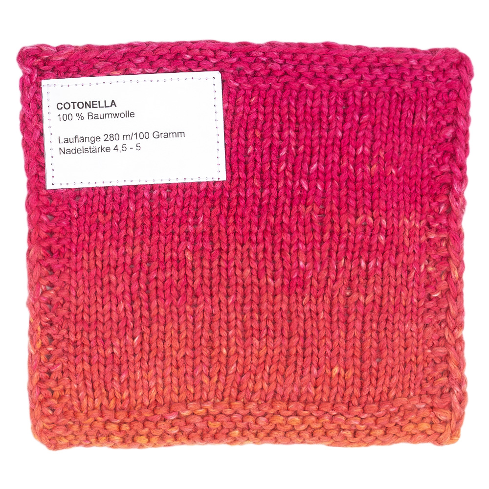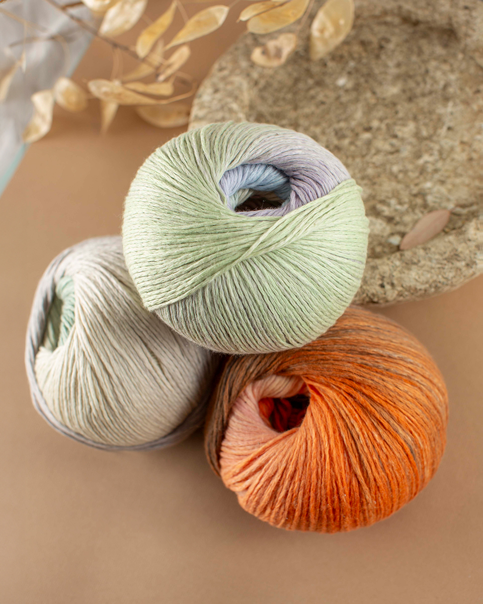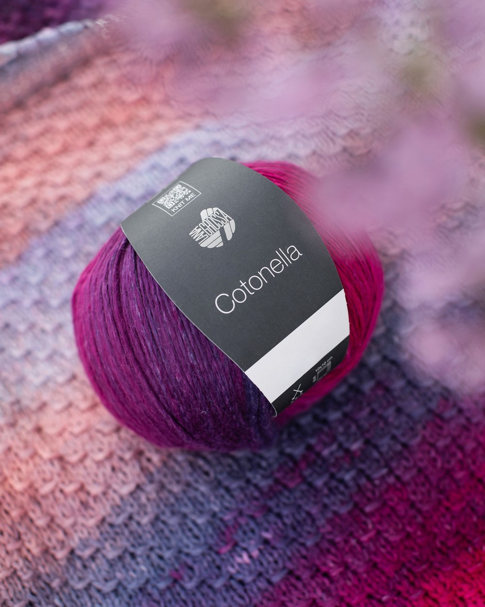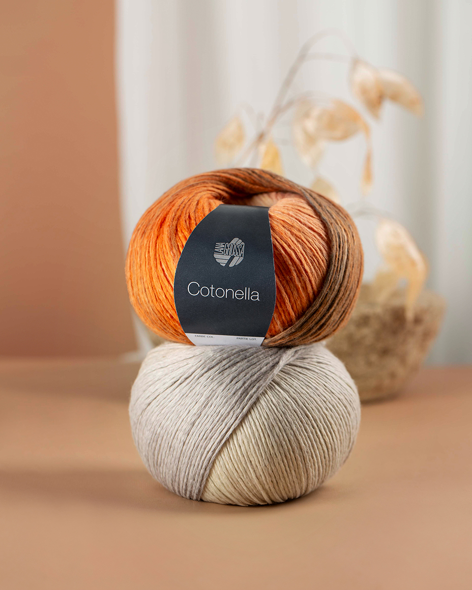 Cotonella est un fil d'été doux, composé à 100 % de coton, qui séduit par son charme particulier : grâce à son effet de dégradé de couleurs spray-dye, il crée un tricot vivant avec un effet légèrement chiné – sans avoir besoin de changer de couleur. Sa texture agréable et sa grande douceur pour la peau font de Cotonella le choix idéal pour des pulls d'été, des tops, des écharpes ou des modèles pour enfants.