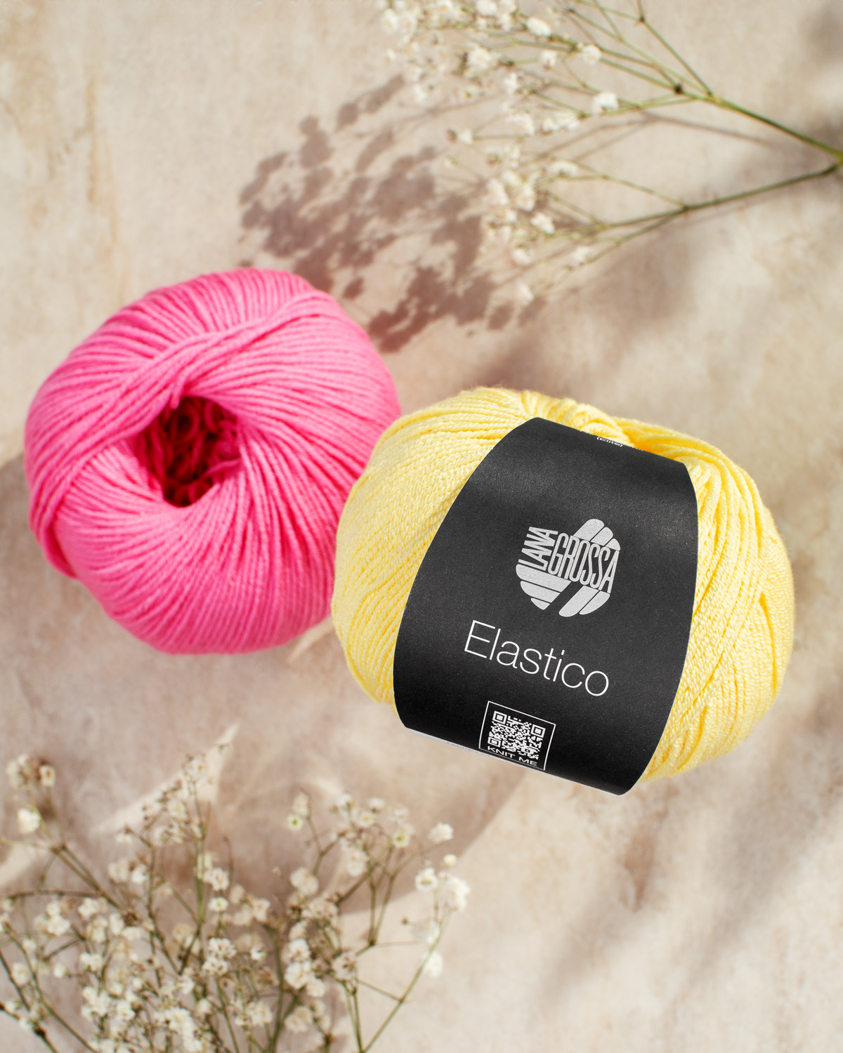 Elastico est un fil doux et élastique en coton, qui se distingue par sa grande extensibilité et sa stabilité de forme. L'alliance de coton et d'élasthanne le rend idéal pour des projets tricotés ajustés, offrant à la fois liberté de mouvement et confort. Son motif de mailles uniforme et sa large gamme de couleurs font d'Elastico un classique polyvalent pour toutes les saisons.