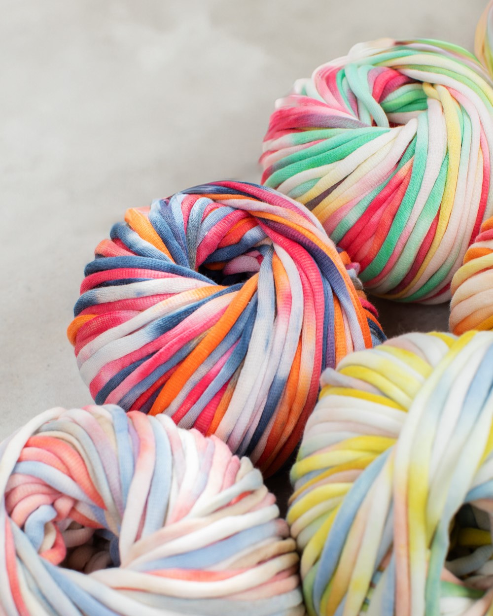 Fil tubulaire rembourré en coton doux avec un imprimé moucheté coloré.