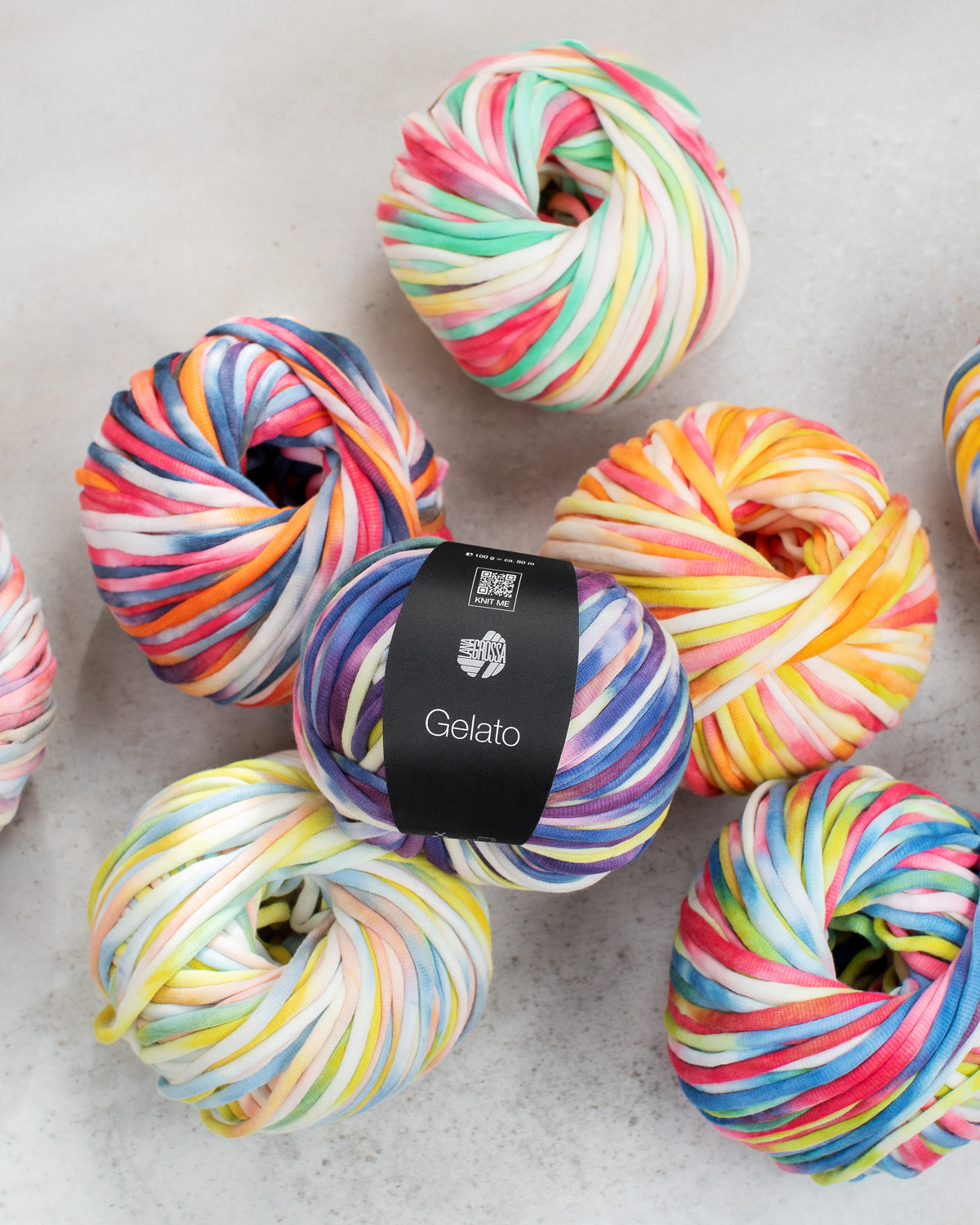 Gelato est un fil léger et aéré pour l'été, avec un effet de volume délicat. La combinaison innovante de coton et de polyamide donne au fil une texture douce, semblable à de la ouate, et un motif de mailles unique avec une surface délicate.