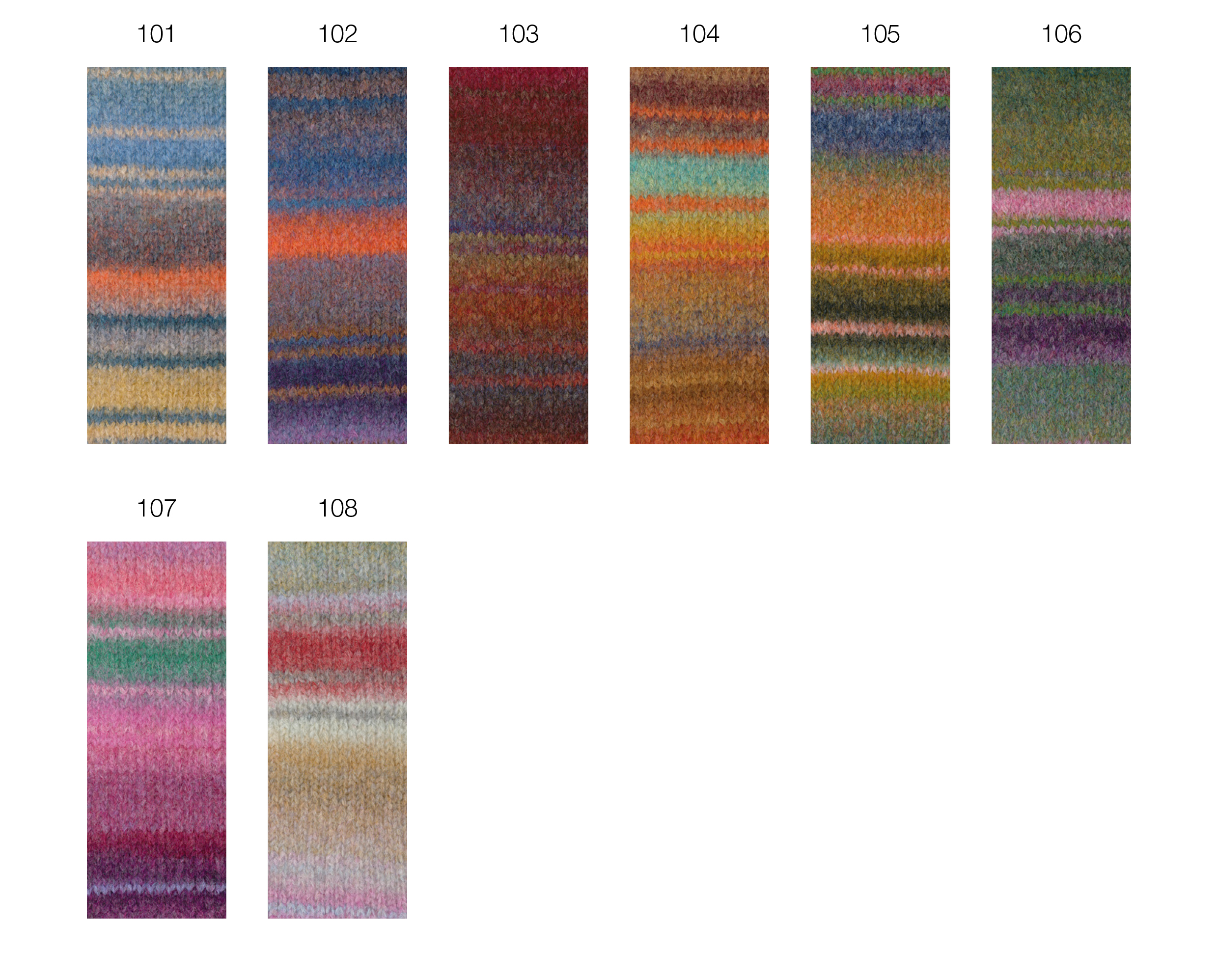 Parfait pour ceux qui aiment la rapidité, la douceur et l'originalité. Le mélange de haute qualité d’alpaga et de polyamide offre chaleur, légèreté et résistance. Le dégradé de couleurs en motif rayé donne à chaque pièce tricotée une touche vivante et unique – sans effort supplémentaire. Idéal pour les débutants et tous ceux qui aiment des résultats rapides : avec des aiguilles épaisses, des bonnets tendance, des écharpes volumineuses, des couvertures ou des pièces oversize se créent en un rien de temps – chaque pièce devient un véritable unique.