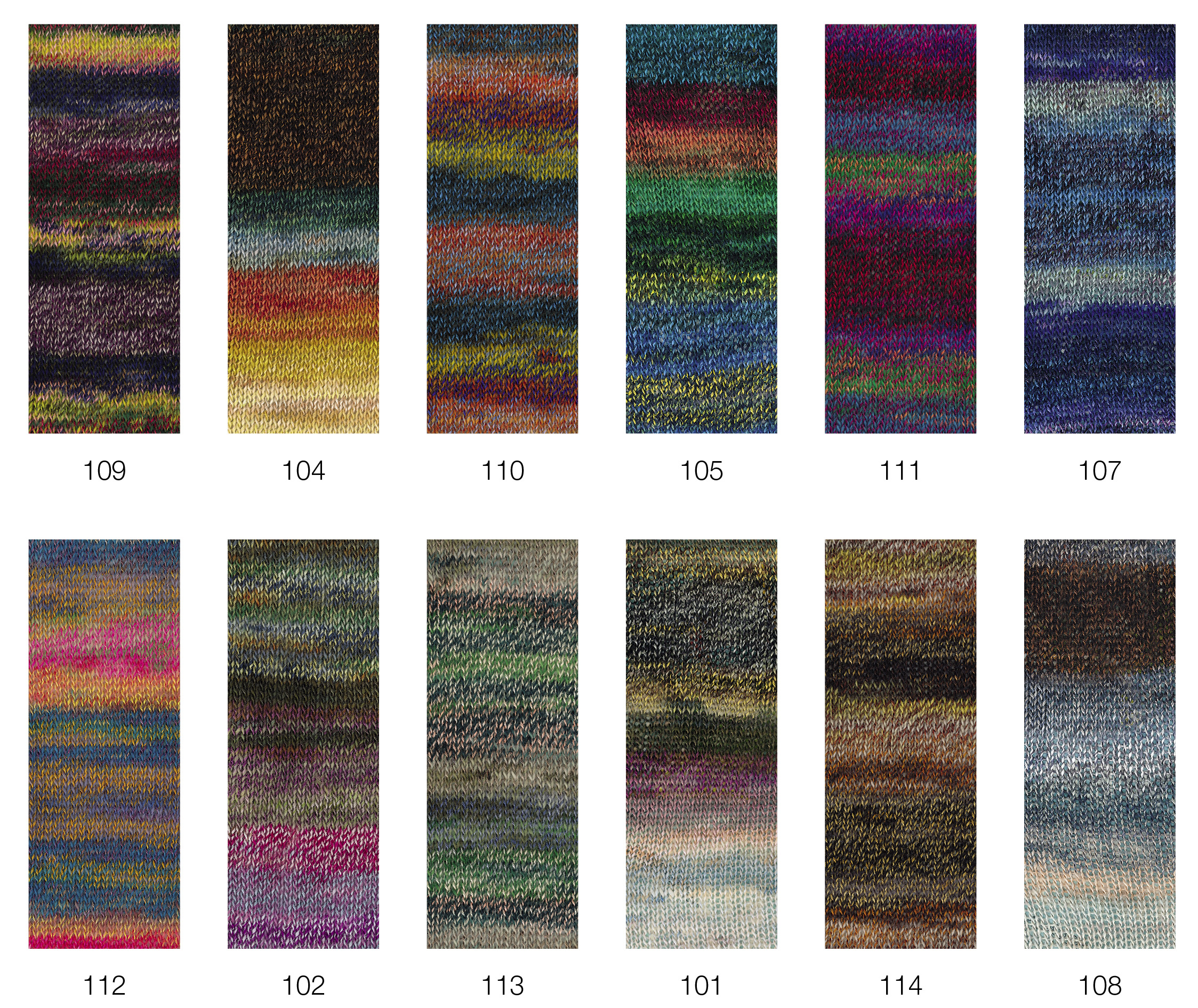 Les dégradés de couleurs tendance du fil multicolore aux reflets subtils donnent tricoté des rayures de différentes épaisseurs