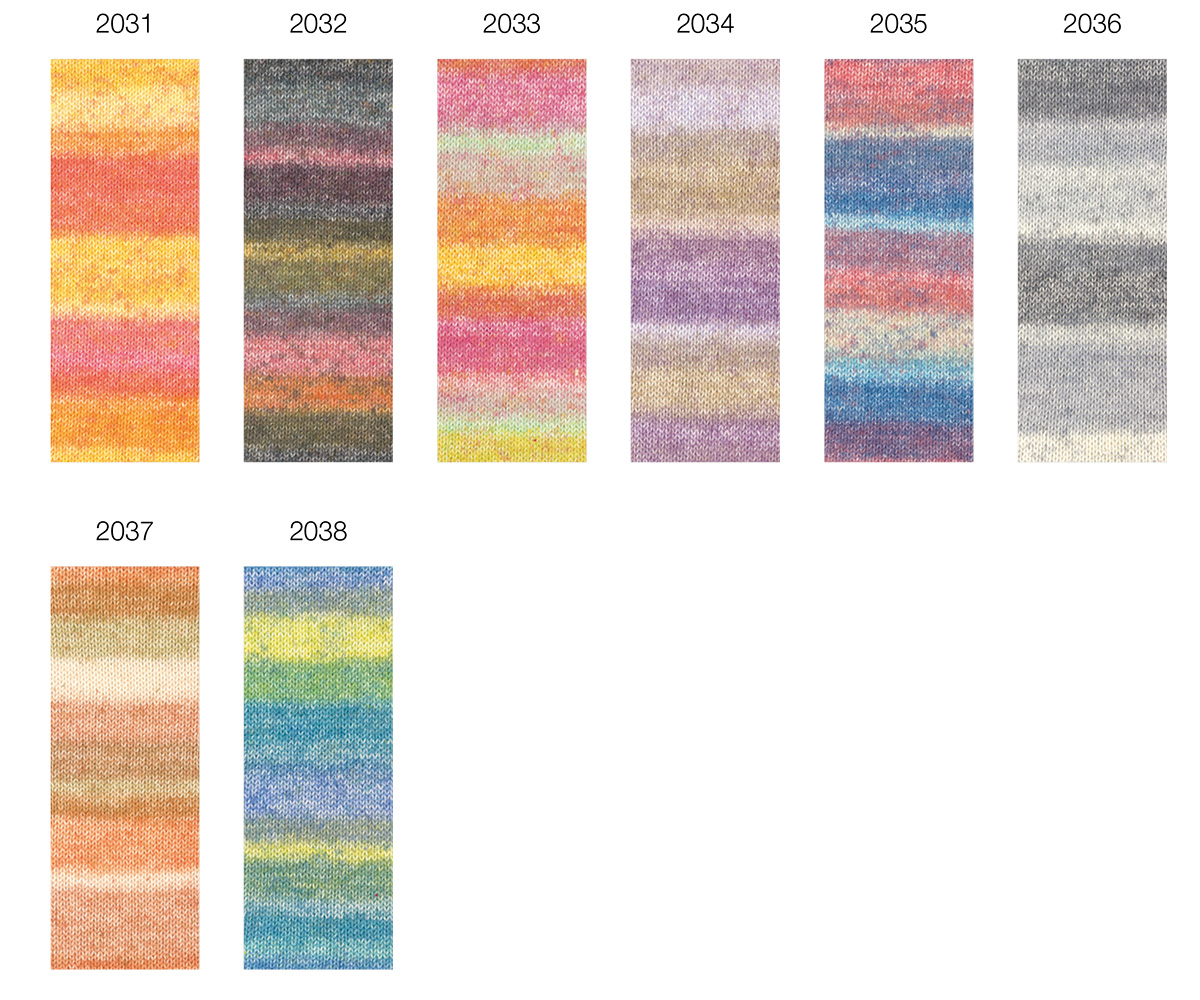 Fil de coton moelleux et doux avec un dégradé de couleurs rayé intéressant directement issu de l'écheveau.