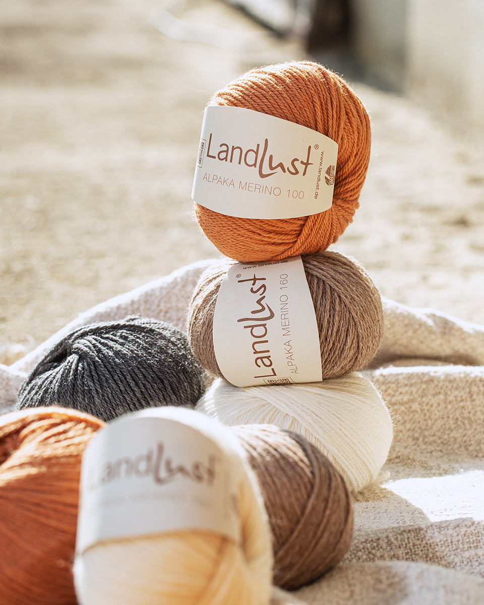 Landlust Alpaka Merino 160 est un fil raffiné et léger, fabriqué à partir d'un mélange merveilleusement doux d'Alpaga et de laine mérinos, créé en collaboration avec le magazine Landlust. Il allie chaleur naturelle, légèreté et confort optimal. Le fil présente une surface lisse agréable, un beau jeu de mailles et est idéal pour des pièces tricotées intemporelles et élégantes, qui dégagent une aura naturelle.