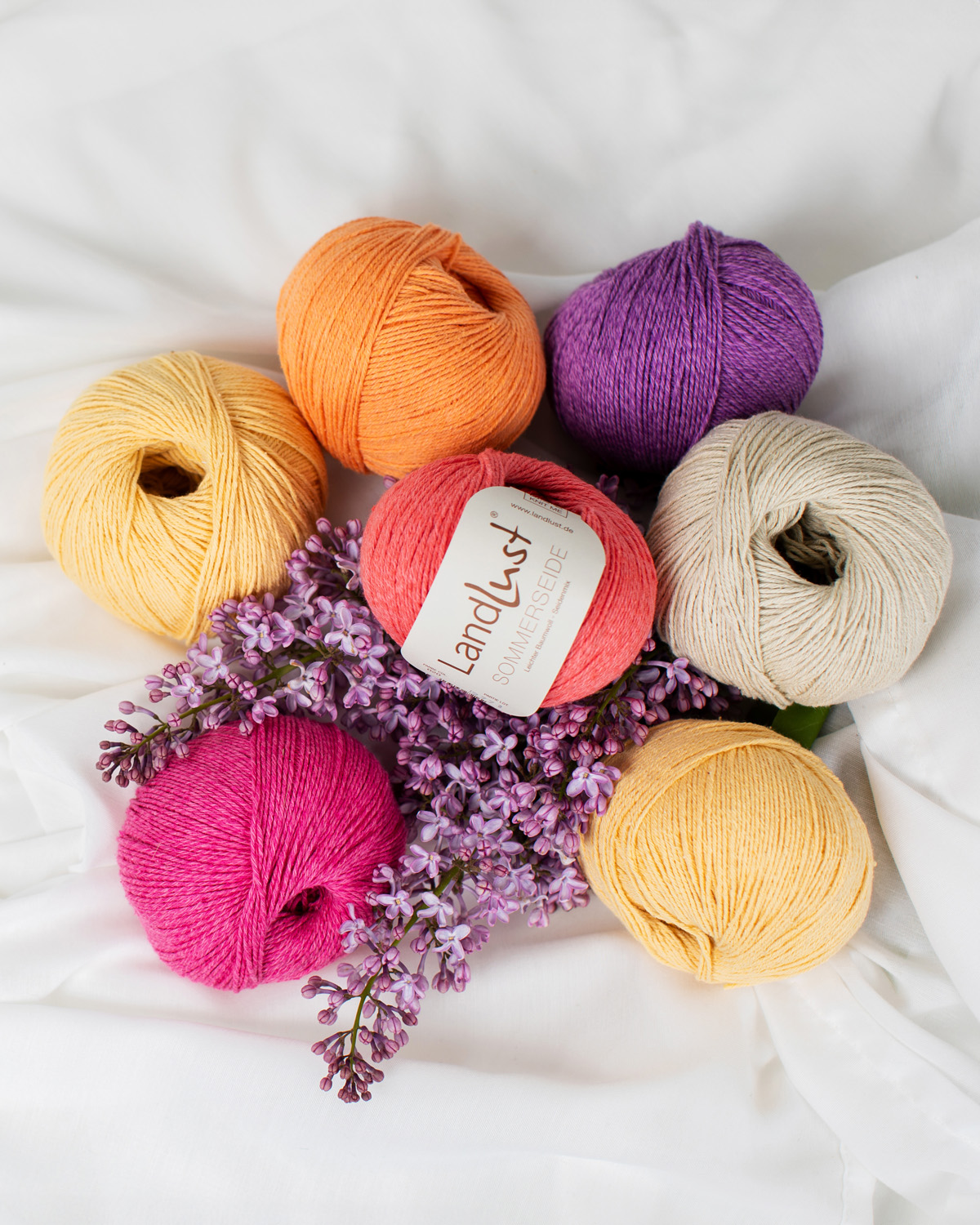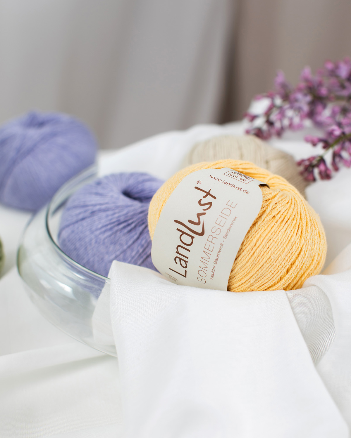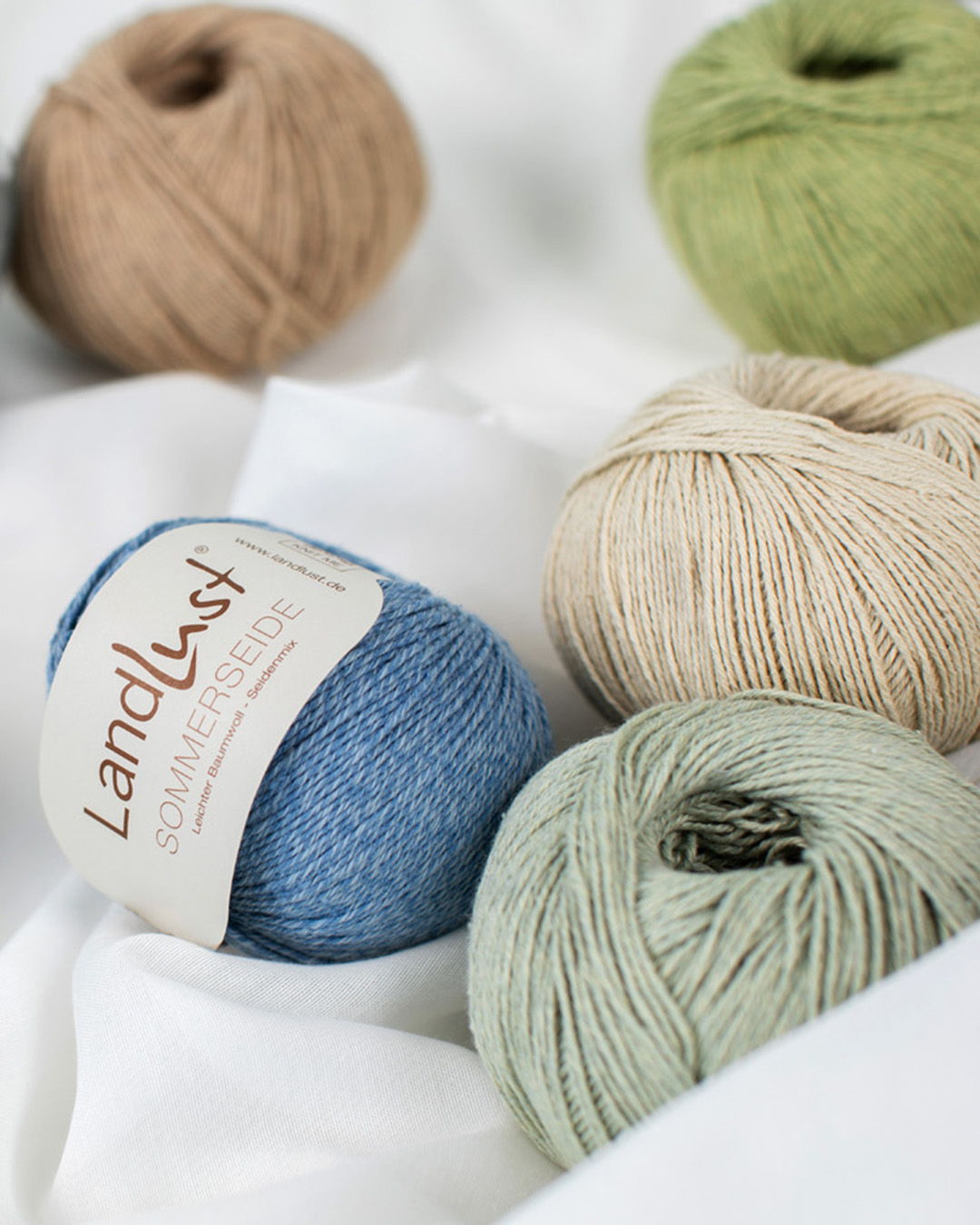 Landlust Sommerseide est un fil précieux pour l'été, développé en collaboration avec le magazine Landlust. Le mélange unique de coton et de soie confère au fil une texture douce, un éclat délicat et un maillage lisse et rafraîchissant – idéal pour des pulls aériens, des tops, des foulards et des accessoires estivaux. Ce fil est respectueux de la peau, régule la température et offre une expérience de tricot naturellement élégante.