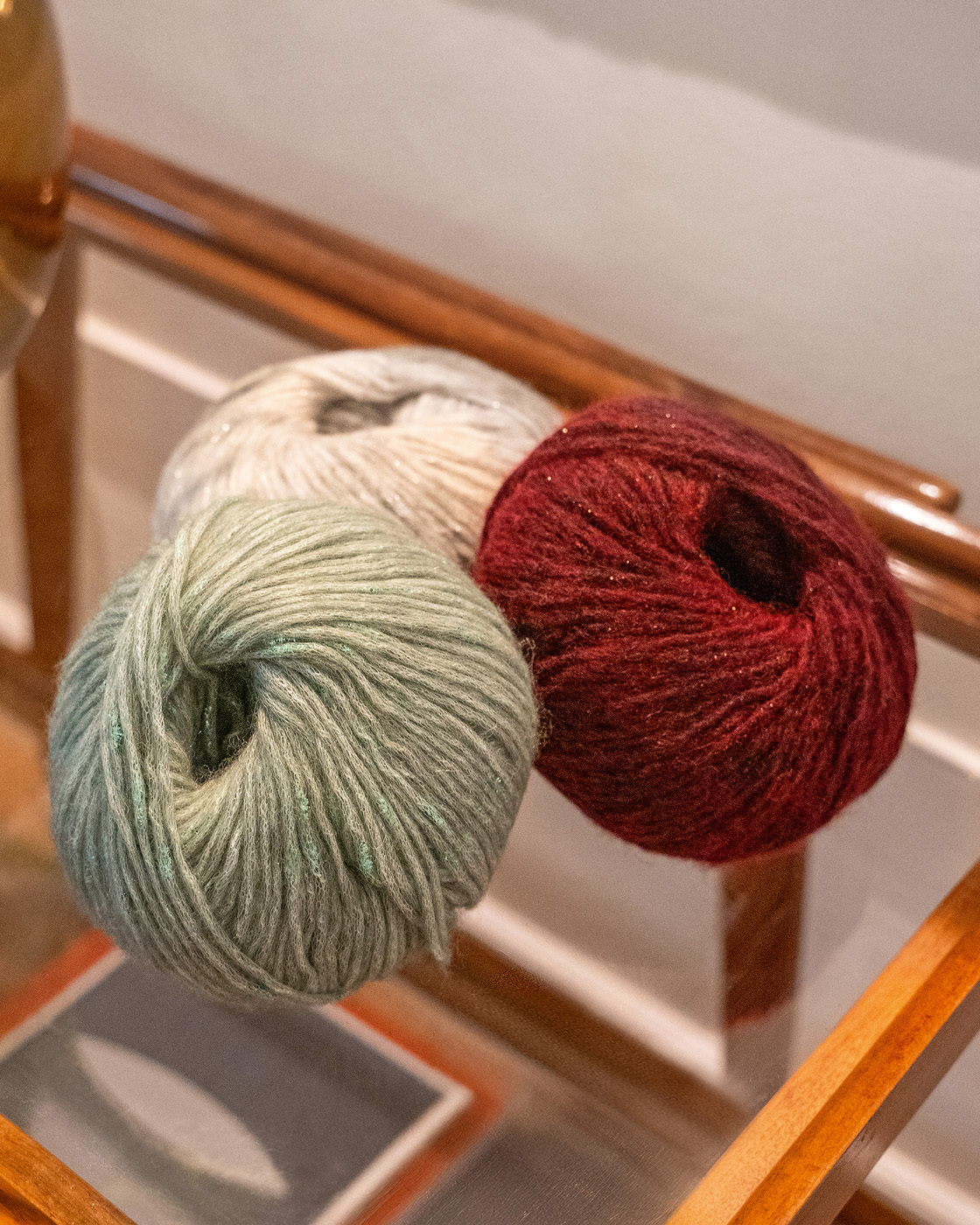 Fil à effet réalisé de fibres d'alpaga et de mérinos avec un éclat métallique.