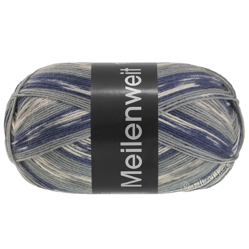 Lana Grossa Meilenweit 100 Black Denim Mix incarne une mode de chaussettes tendance dans un look jean élégant.