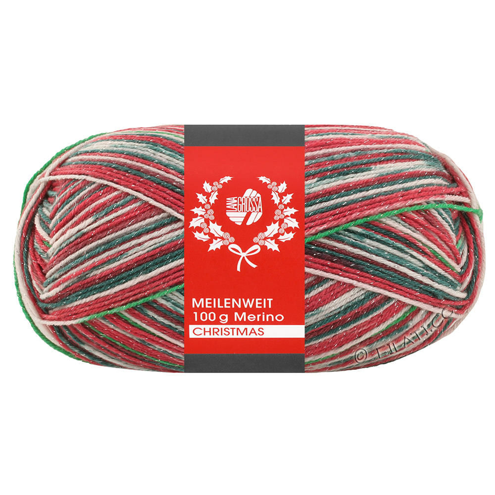 Lana Grossa MEILENWEIT 100g Merino Christmas LurexTVA comprise, frais de port en sus, Prix de base: 89,50 / kghors TVA, frais de port en sus, Prix de base: 75,20 / kg