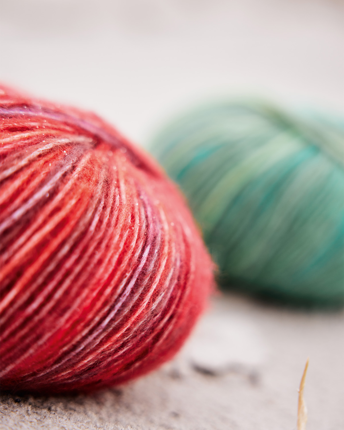 Fil "soffilo" (blow yarn) avec des fibres de baby alpaga et de mérinos et un effet de couleur intéressant.