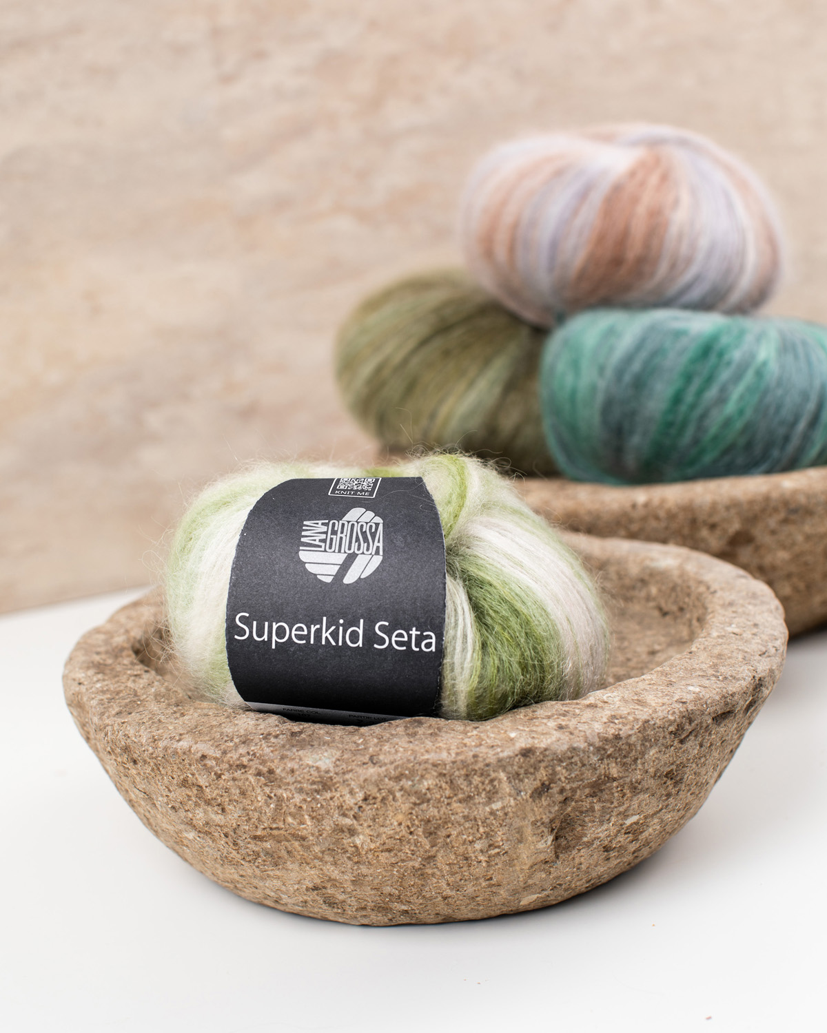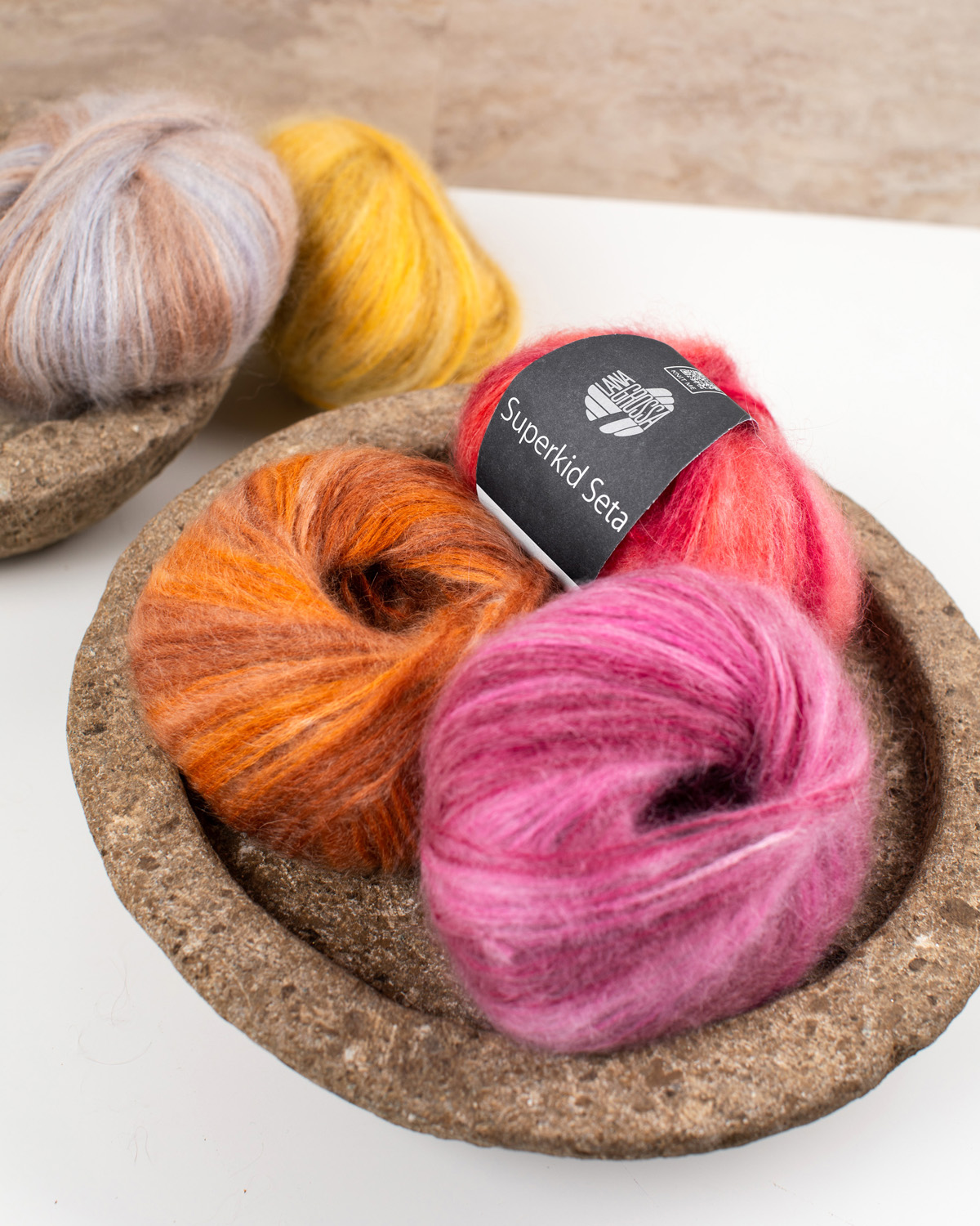 Superkid Seta est un fil noble, composé du meilleur Superkid-Mohair et de soie scintillante – léger comme un nuage, doux au toucher et luxueux à l’apparence. Le délicat duveteux et la brillance subtile apportent à chaque pièce tricotée une touche élégante et féminine. Il est également idéal comme fil d’accompagnement pour ajouter de la profondeur et de la sophistication à vos projets.
