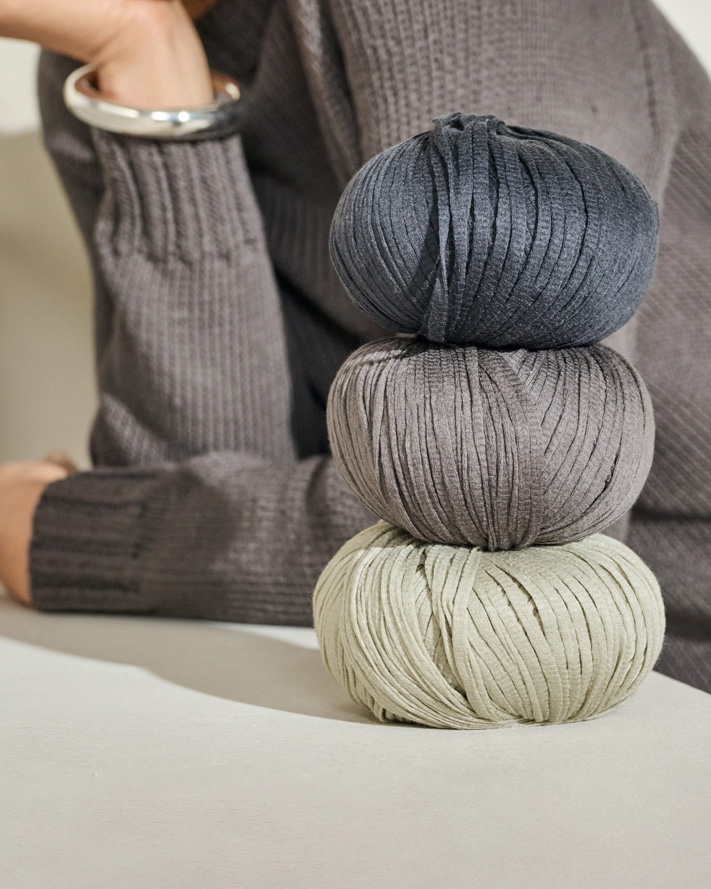 Des fibres de coton délicates sont transformées en un fil de ruban fin, dont l'aspect mat, semblable à celui du papier, lui confère un caractère d'une pureté exceptionnelle.