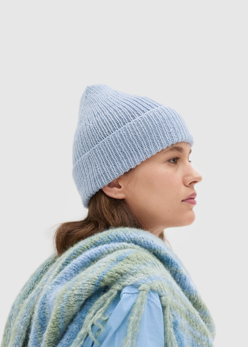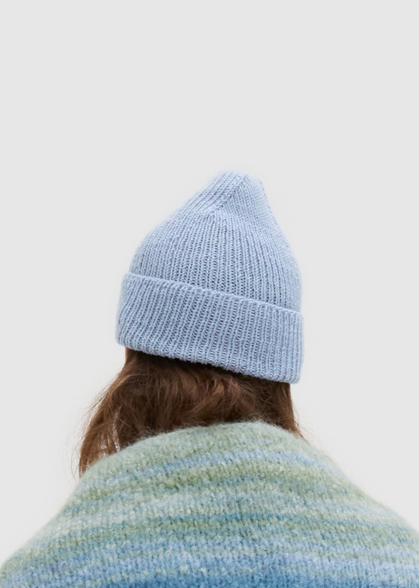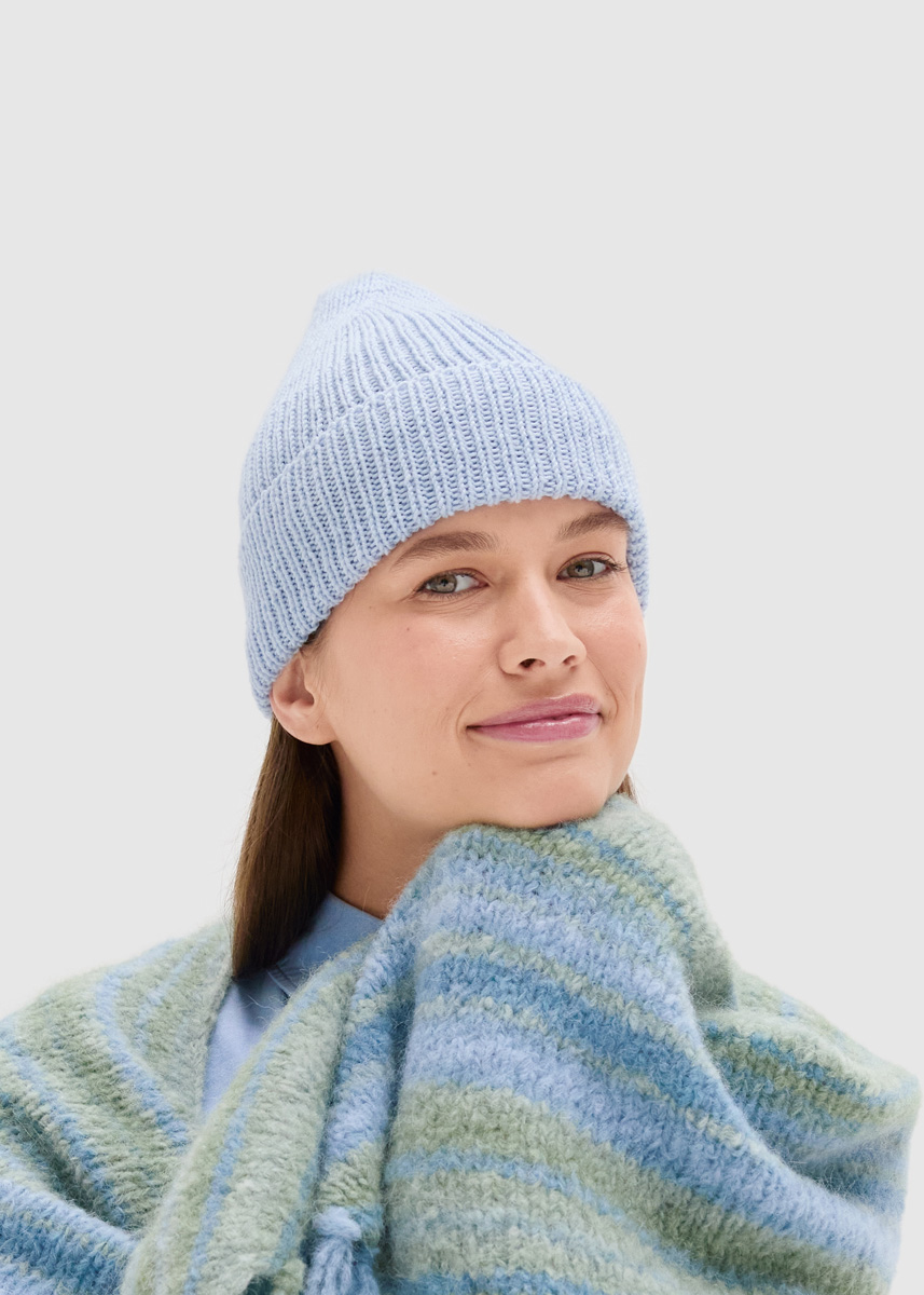 Lana Grossa «Cool Wool» (100% laine vierge (mérinos extra fine), long. de fil 160 m/50 g) : 100 g en bleu pâle (col. 2119) ; jeu d´aig. n° 3,5 ; anneaux marqueurs (AM)