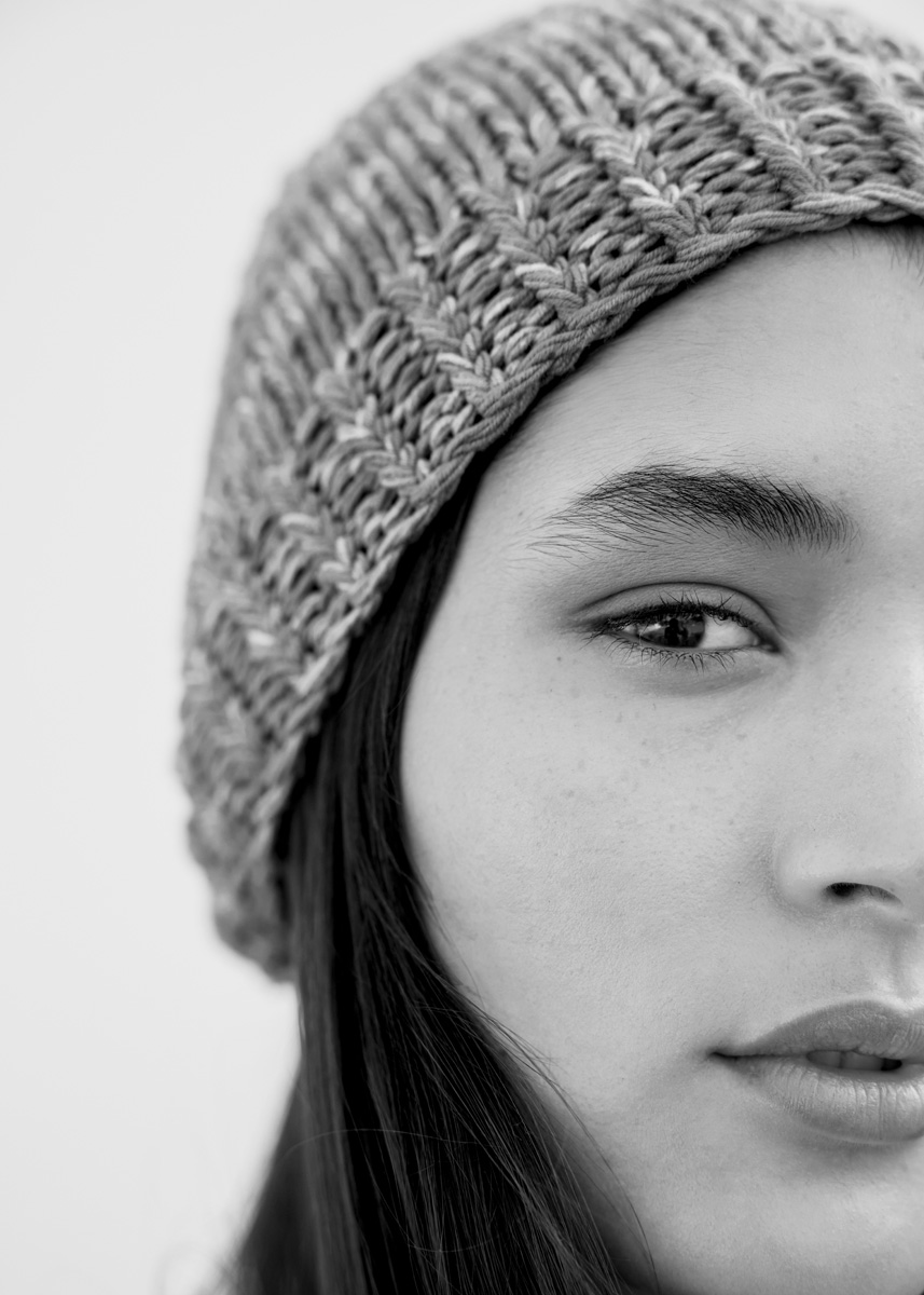 Le bonnet est tricoté en continu avec quatre fils, pour cela chercher le fil intérieur de la pelote et l´enrouler avec l´autre moitié du fil extérieur - contrôler sur une balance de cuisine. Arrivé au milieu, doubler les fils et tric. ainsi avec 4 fils.