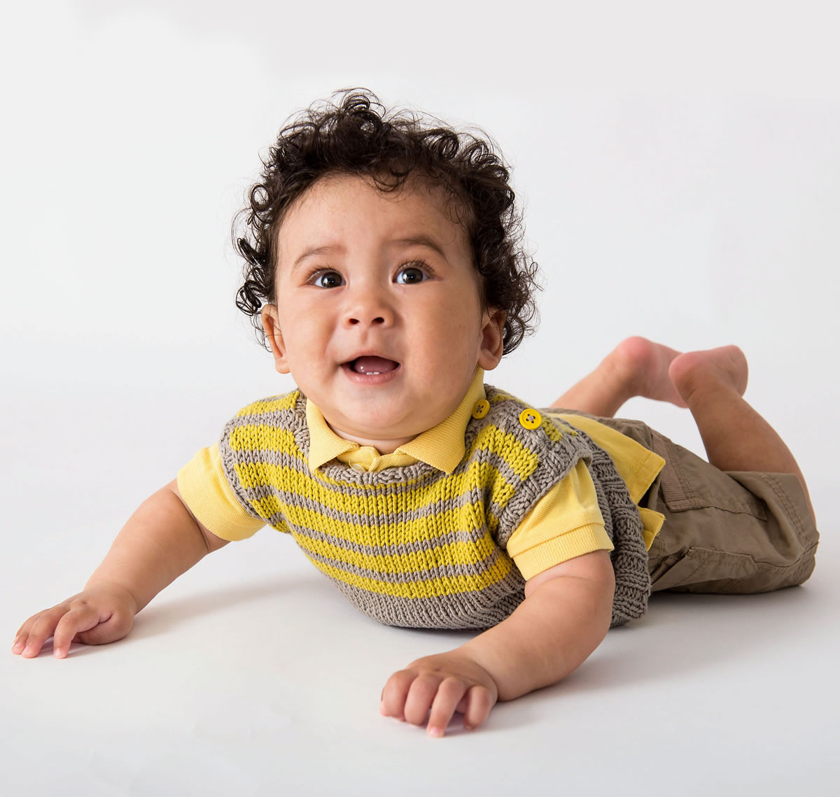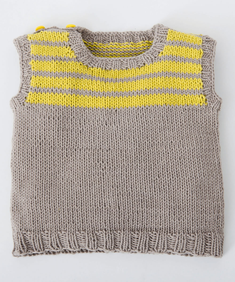 Quoi de neuf ? Une séance de photos ! Quelques photos souvenir de tes premiers « exploits » ! Crapahuter comme un champion et faire des discours comme un professeur ! Tes vêtements tricotés à la mode sont idéaux : le débardeur sportif avec la patte de boutonnage pratique - très facile à enfiler et à enlever. Le débardeur torsadé classique souligne la touche intellectuelle avec une encolure en V confortable. Comme on peut l’enfiler sans problème, junior n’a pas de critique à faire !