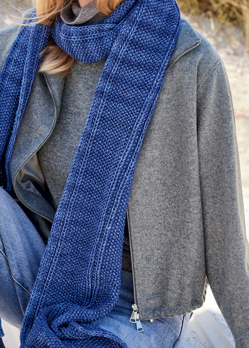 Lana Grossa Cool Wool Big Vintage (100% laine vierge (mérinos extrafine), long. de fil 120 m/50 g), 300 g en bleuet (col. 7190). Aig. à tric. n° 6.