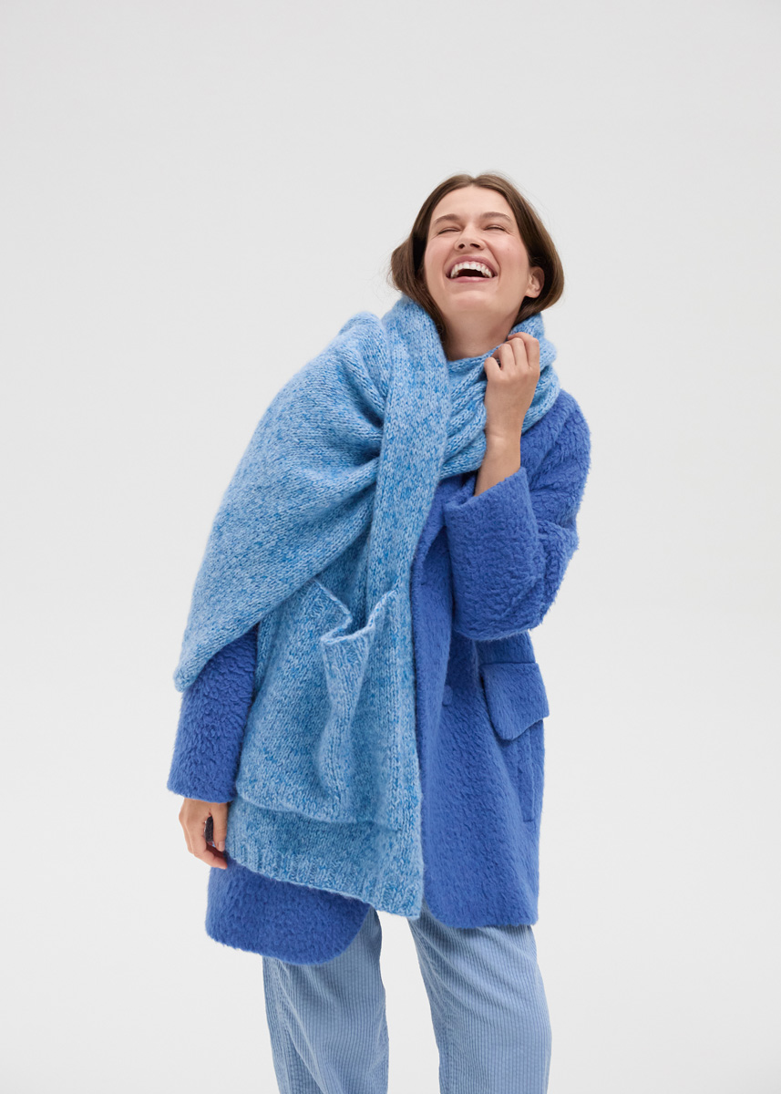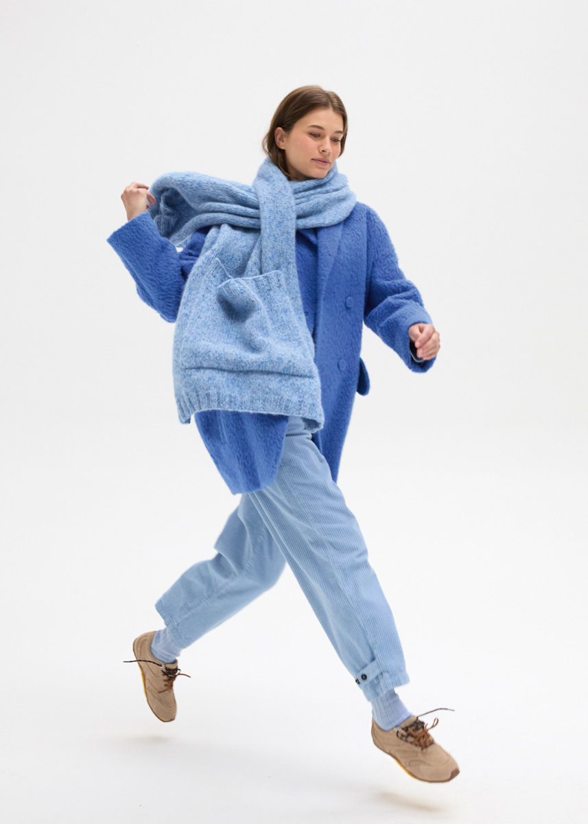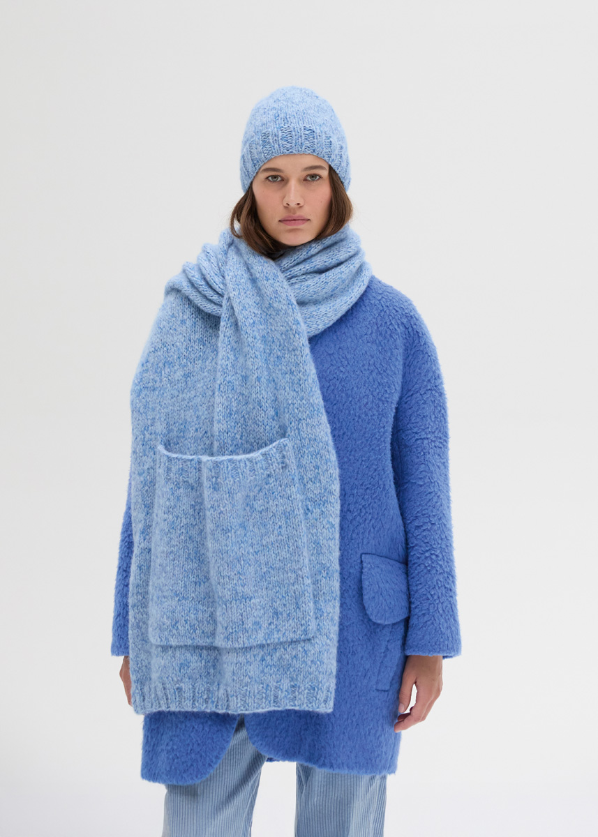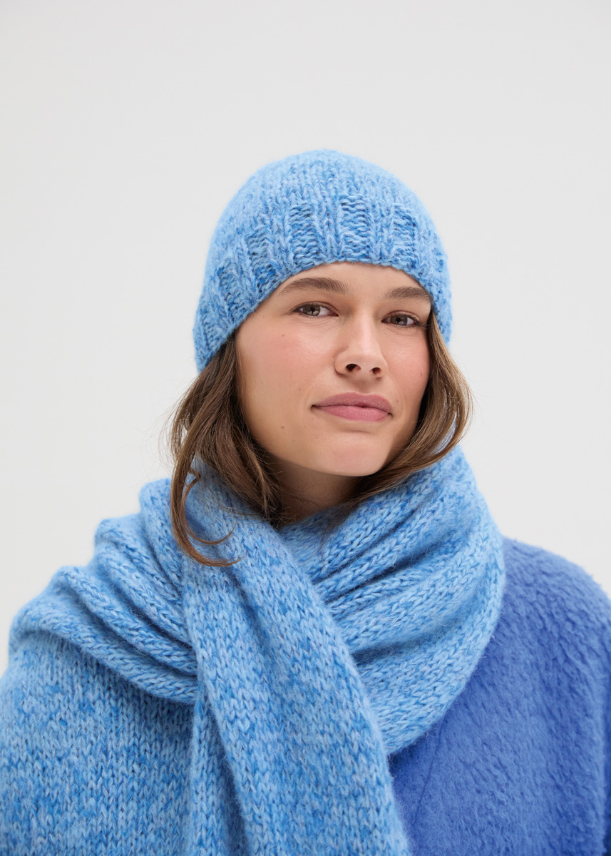 Remarque : l’écharpe est tricotée avec une fil triple, un fil de chaque qualité