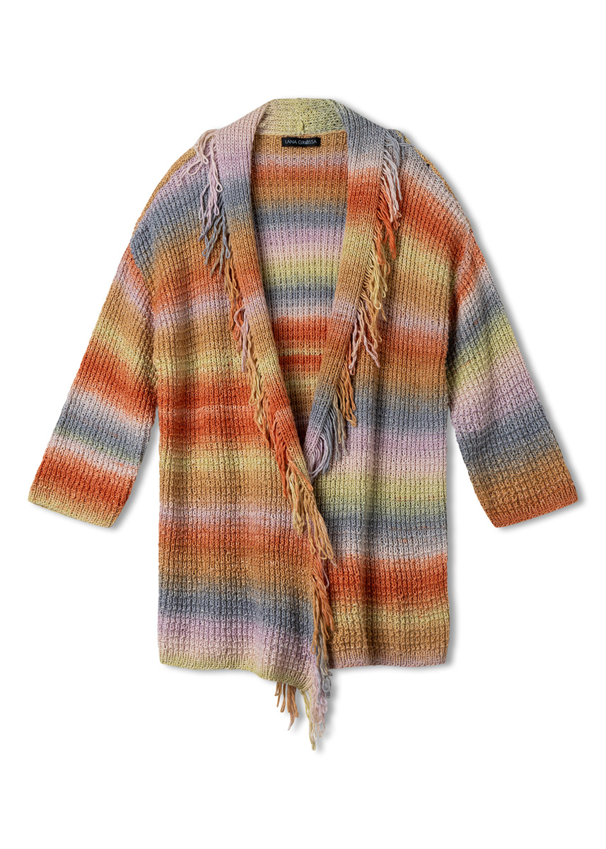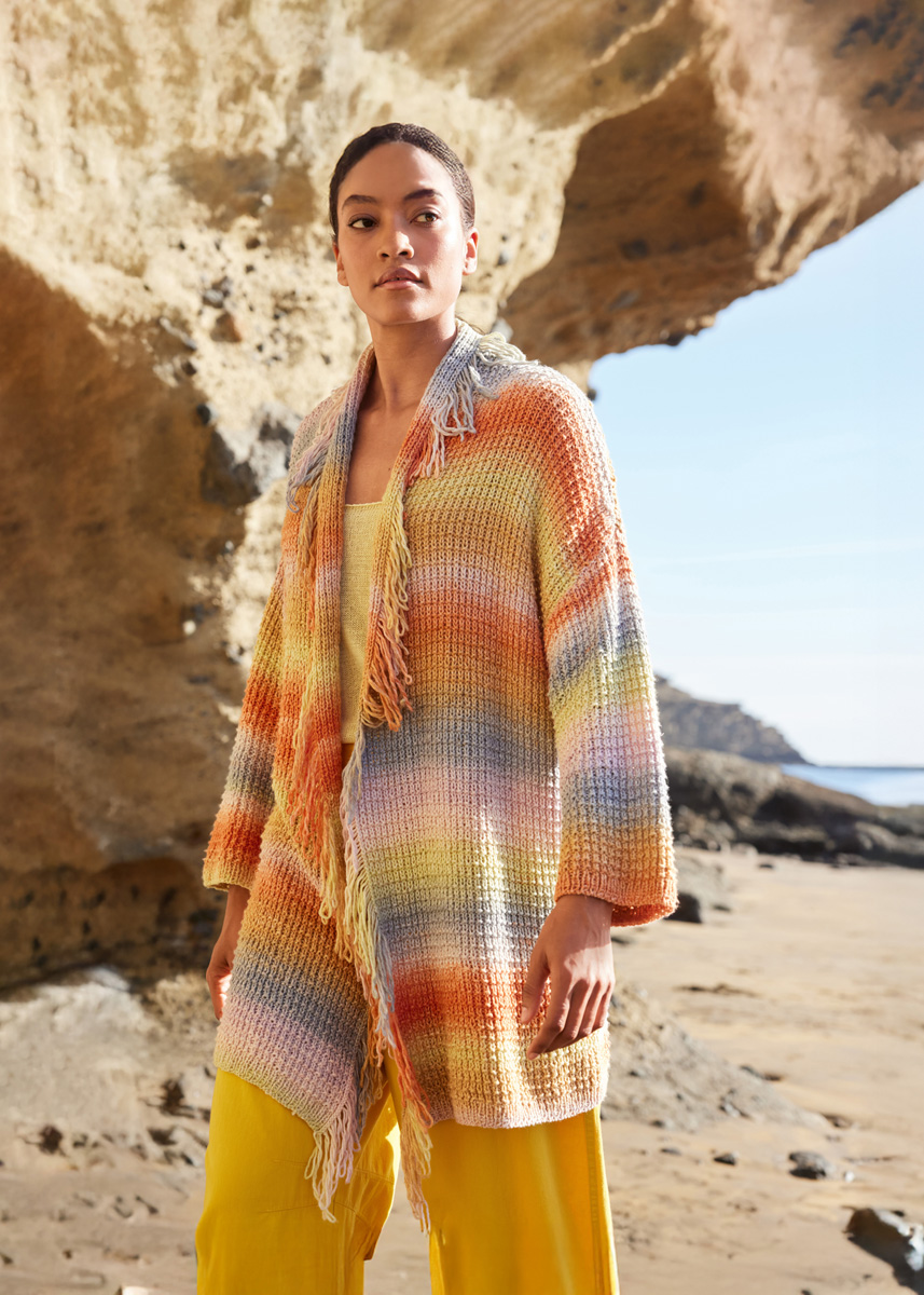 Lana Grossa Cotonella (100% coton, long. de fil 280 m/100 g), 600 (700 - 700) g en lilas pâle/nature/vanille/gris/rouille/camel (col. 20) ; aig. à tric. n° 4,5.