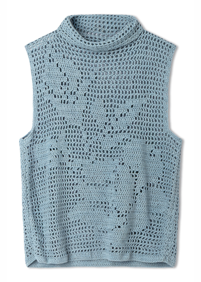 Lana Grossa « Solo Lino » (80 % lin rec. (viscose), 20 % lin, long. de fil = env. 120 m/50 g) : env. 350 (400) g bleu clair (col. 46) ; 1 crochet n° 3,5