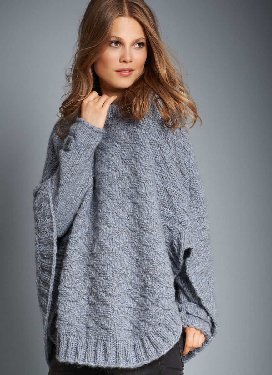 ÉLÉGANT ET DÉCONTRACTÉ - exactement votre style ? Alors ce poncho est la pièce qu´il vous faut. Le motif structuré du poncho est combiné avec des mitaines tricotées en jersey endroit. L'interaction des deux : remarquable !