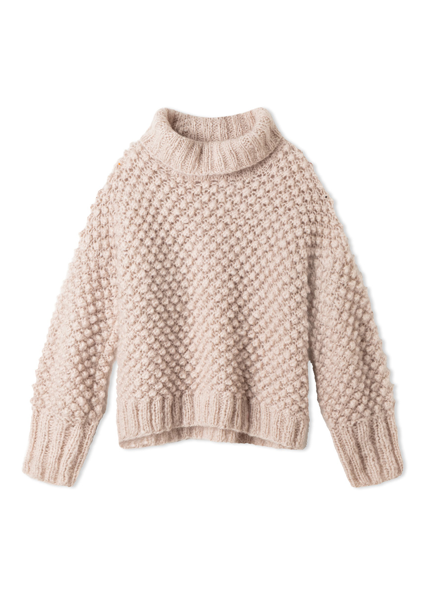 Lana Grossa qualité «Mohair Moda» (70 % mohair (kid mohair), 20 % laine vierge (mérinos superfine), 10 % polyamide, long. de fil = env. 140 m/50 g) : env. 600 (650 - 700) g en beige (col. 11) ; aig. à tric. n° 7 et 10, aig. circ. n° 7 et 10 de 60 cm de long, jeu d´aig. n° 7.
