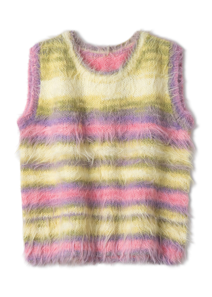 Qualité Lana Grossa « Basta Mista » (50% laine vierge (mérinos), 50% polyamide, métrage env. 100 m/50 g) : 250 (250 - 300 - 300) g gris-vert/gris-bleu/pétrole clair/gris/vert clair (col. 115), 250 (250 - 300 - 300) g pêche/abricot/orange/rose/rose bonbon/fuchsia (col. 111) ou 250 (250 - 300 - 300) g crème/vanille/citron vert/vert gris/rose/lilas/lavande (col. 112) ; aiguilles circulaires de taille 4 et 6 ; 1 aiguille circulaire courte de taille 4.