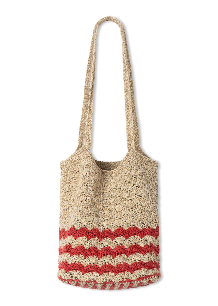 Lana Grossa « Diversa » (74 % coton, 26 % viscose, long. de fil = env. 210 m/50 g) ; env. 100 g beige (col. 30) et env. 50 g rouille (col. 22) ; 1 crochet n° 4 ; env. 18 x 18 cm carton rigide pour le fond.