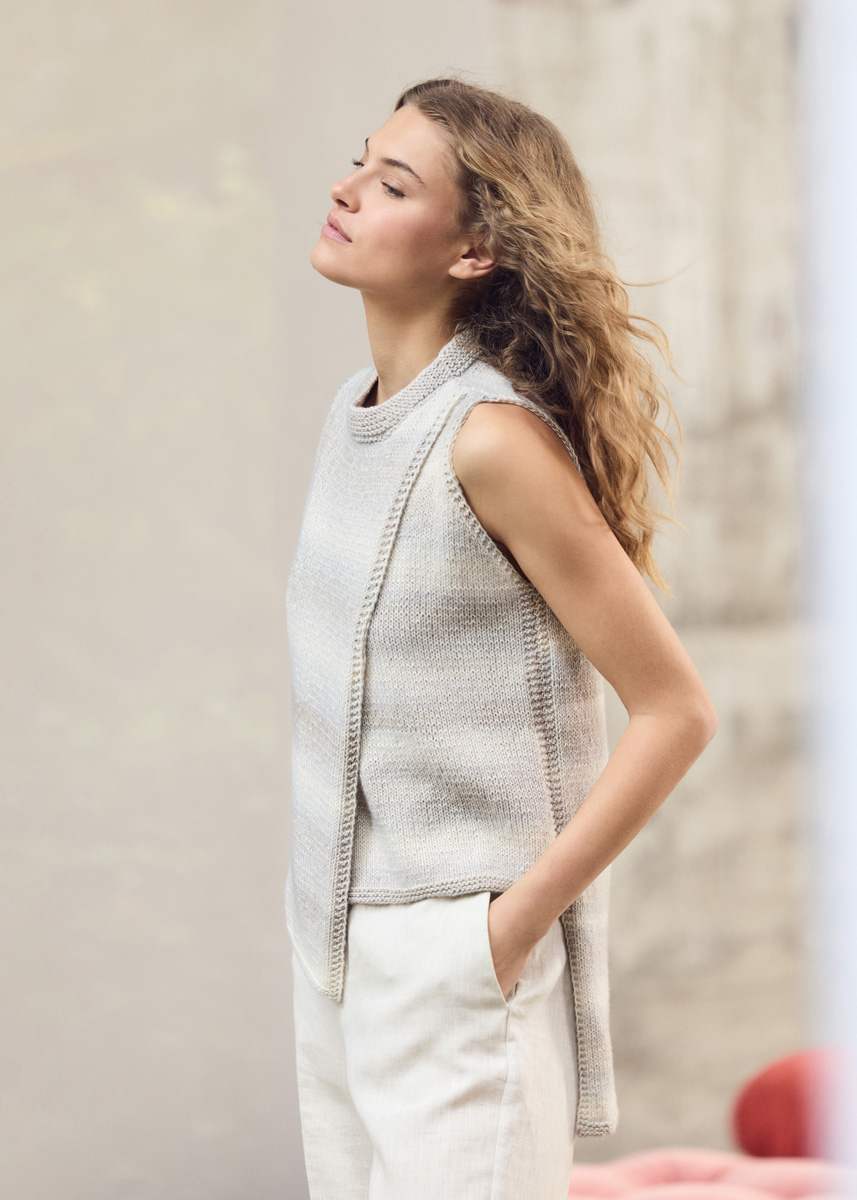 Laine Lana Grossa qualité « Corallo » (70% coton (biologique), 30% laine vierge (mérinos), métrage environ 210 m/100 g) : environ 400 (500 - 500 - 600) g beige/grège/blanc cassé (col. 10) ; aiguilles à tricoter de taille 4 et 4,5 ; aiguille à tricoter circulaire courte de taille 4.