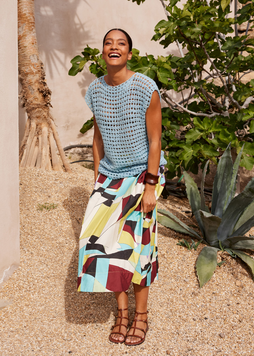 Lana Grossa Ella (100% coton, long. de fil 130 m/50 g), 250 (300 - 300 - 350) g en bleu clair (col. 6) ; crochet n° 4