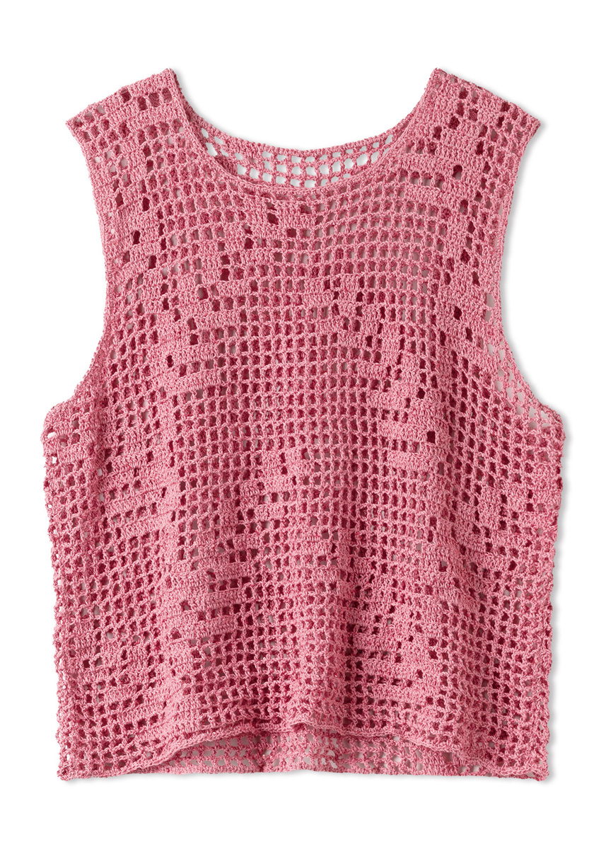 Lana Grossa qualité Filo Paillettes (55% polyester, 39% coton, 6% polyamide, long. de fil = env. 220 m/50 g) : env. 200 (250 - 250 - 300) g en saumon (col. 6) ; crochet n° 3.